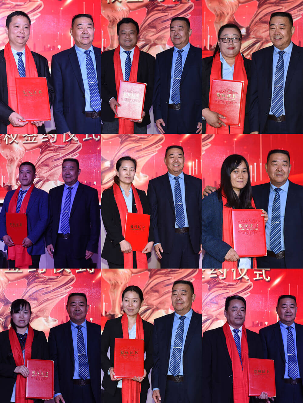 上午8點58分,股權(quán)簽約儀式在雄壯的國歌聲中正式開始。儀式由集團執(zhí)行總裁刁興廣主持,70多位員工依次簽約,并佩戴紅圍巾,手持股權(quán)證書與李允文董事長合影留念。簽約完畢后,股東們舉起右手,莊嚴(yán)宣誓,表明了要與集團同呼吸、共命運、榮辱與共,時刻把集團利益放在首位,為集團奮斗終生的決心——凝心聚力,戮力同心!