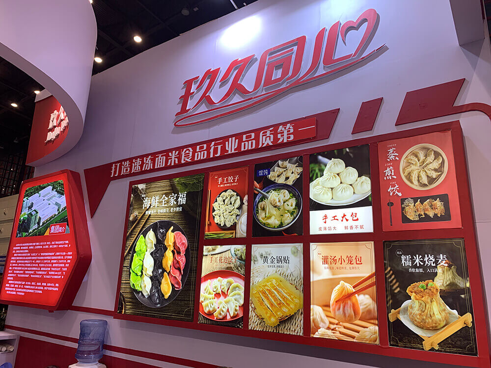精致的展位設(shè)計(jì)、琳瑯滿目的展品、香氣撲鼻的食物使得玖久同心展位前人頭攢動(dòng)、摩肩接踵,采購(gòu)商與食客們紛紛駐留,一口一口地品嘗著餃子、蒸包、蒸餃、鍋貼等產(chǎn)品,全系產(chǎn)品的驚艷亮相皆令人嘆為觀止,大家紛紛翹起大拇指點(diǎn)贊。