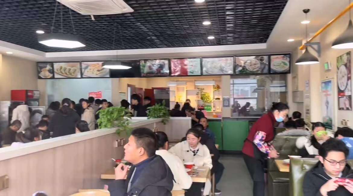 冬至期間,店鋪一開門,外賣訂單就如洪水般涌來,各訂餐軟件送餐員早早的排著隊(duì)等待取餐,單是外賣銷售額,就已突破平日里店鋪一天的銷售額。還沒到飯點(diǎn)兒,大堂里已經(jīng)坐滿了人。